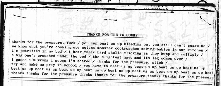 - A set of lyrics written by Thurston circa 1984/1985. Whether or not these lyrics were ever put to music is uncertain, but
