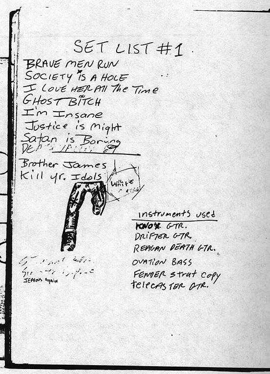 - A Minor Threat cover that the band discusses performing in the 1984 Forced Exposure interview. It's not clear whether they rehearsed the song or not, but it is faintly listed on the 1984 set list along with "Sinister Purpose" and "Jealous Again".